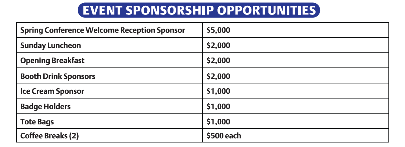 All contracted exhibitors and sponsors will be provided several promotional opportunities. Our quarterly newsletter will promote all exhibitors and sponsors prior to and after the conference. Attendees will be provided a souvenir program book listing all exhibitors, sponsors and advertisers including product/service descriptions and contact information. Please see additional opportunities for sponsorship promotion below and on the next page.